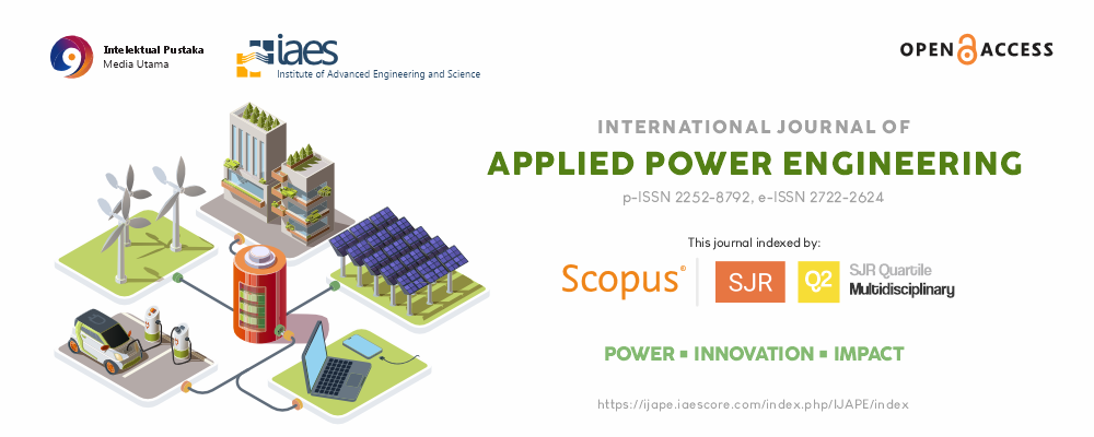 The International Journal of Applied Power Engineering (IJAPE), ISSN: 2252-8792 (Print) | e-ISSN: 2722-2624 (Online), is a peer-reviewed, open-access international journal dedicated to publishing high-quality, cutting-edge research in applied power engineering. With a strong emphasis on practical innovations across power generation, transmission, distribution, sustainable energy, and power control applications for large-scale power systems, IJAPE aims to advance knowledge and support the efficient, reliable, and sustainable operation of electrical energy systems. Published quarterly (4 issues per year) by Intelektual Pustaka Media Utama (IPMU) in collaboration with the Institute of Advanced Engineering and Science (IAES), IJAPE consistently delivers timely and impactful contributions to the global power engineering community.